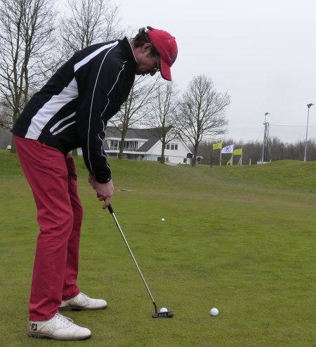 Ga hierna met de overgebleven putters een aantal langere putslagen oefenen. Dit omdat bij de langere slagen het gevoel op het gewicht van de putter beter naar boven komt. Bij een te lichte putter zult u snel meer vanuit uw handen gaan slaan terwijl een te zware putter zal gaan wiebelen waardoor u in eerste instantie meer zult gaan knijpen. Uiteindelijk blijft er een putter over waar u uw handicap mee zult gaan verlagen.
